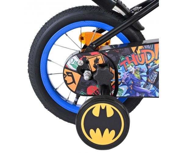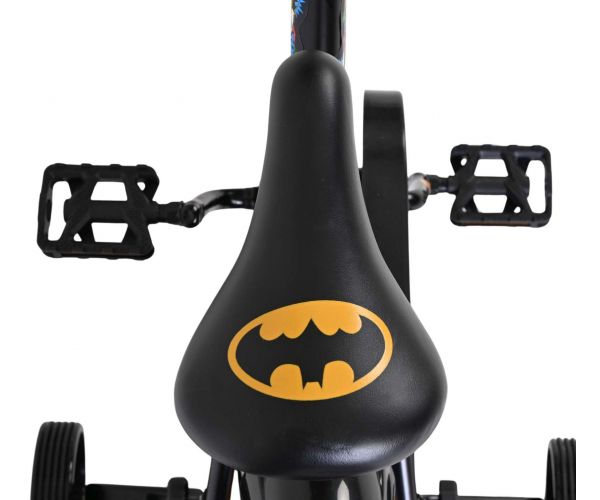 Veiligheid staat voorop! Daarom heeft deze gave fiets een handrem en terugtraprem en een gesloten kettingkast. Daarnaast heeft de fiets afneembare zijwieltjes om snel te leren fietsen, een bel, en reflectoren in de trappers. Ook aan het comfort is gedacht. De mooie zwarte Batman fiets met blauwe accenten heeft extra lange spatborden om al het vuil tegen te houden, een aangenaam zacht zadel en een uniek frame dat wel tegen een stootje kan. Om zo lang mogelijk van de fiets te kunnen genieten zijn het zadel en stuur in hoogte verstelbaar. Kortom: een topkwaliteit fiets waar uw kind nog jaren van kan genieten!