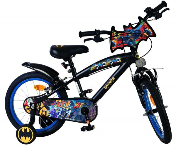 Voor iedere jonge superheld is de Volare Batman 16 inch kinderfiets de ultieme droom! Deze stoere fiets is helemaal in stijl van Batman uitgevoerd en heeft een coole voorplaat met een afbeelding van de beroemde held.