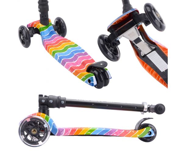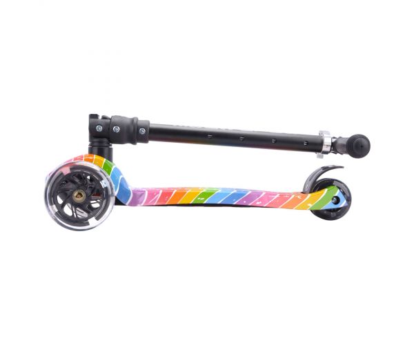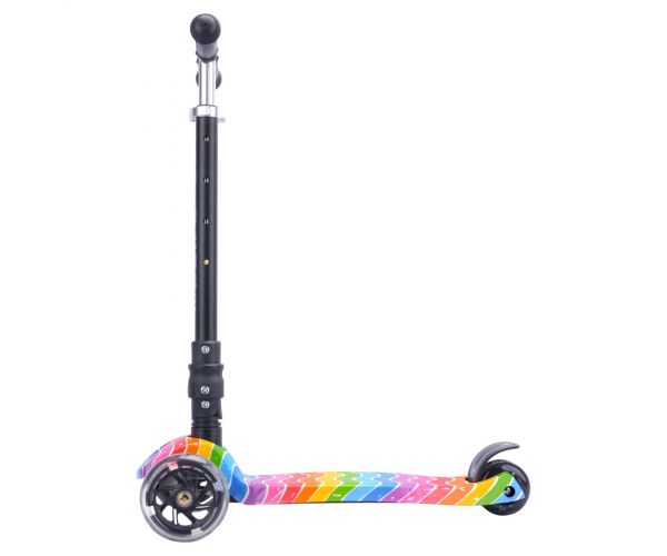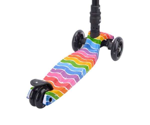 Dankzij het slimme lean-to-steer systeem leren kinderen spelenderwijs hun evenwicht te bewaren, terwijl de drie wielen zorgen voor extra stabiliteit en vertrouwen onderweg. De dubbele achterwielen zijn voorzien van heldere knipperlichten, waardoor je kind altijd goed zichtbaar is. Voor extra veiligheid beschikt de step over een stevige stomprem, waarmee afremmen eenvoudig en betrouwbaar gaat.