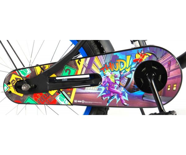 Sicherheit geht vor! Deshalb hat dieses coole Fahrrad eine Handbremse, eine Rücktrittbremse und einen geschlossenen Kettenschutz. Außerdem haben die Fahrräder eine Klingel und Reflektoren vorne, hinten und an den Pedalen. Auch an den Komfort wurde gedacht. Das schöne schwarze Batman-Bike mit blauen Akzenten hat extra lange Schutzbleche, die den ganzen Schmutz fernhalten, einen angenehm weichen Sattel und einen einzigartigen Rahmen, der einiges aushält. Damit Sie so lange wie möglich Freude an Ihrem Fahrrad haben, sind Sattel und Lenker höhenverstellbar. Kurzum: ein hochwertiges Fahrrad, an dem Ihr Kind jahrelang Freude haben wird!