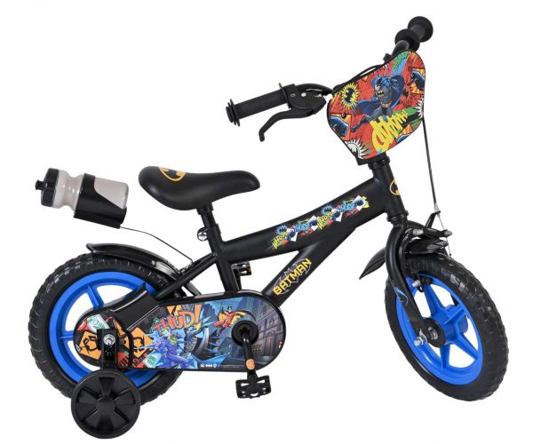 Met de Batman 12 inch jongensfiets wordt leren fietsen een stoer avontuur. Deze kinderfiets is perfect voor de eerste veilige meters en is uitgerust met massieve EVA banden. Daardoor rijdt de fiets licht en comfortabel en heb je geen zorgen over lekke banden. Deze fiets heeft een doortrapsysteem waarmee het kind voor - als achteruit kan fietsen. Ook beschikt de fiets over 1 handrem.