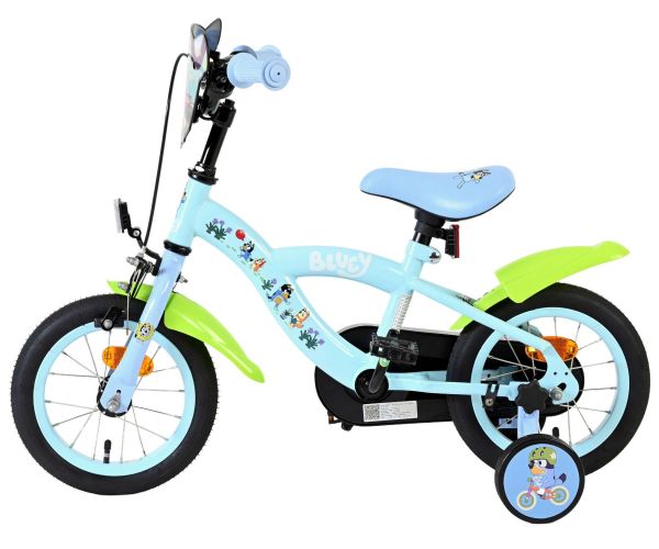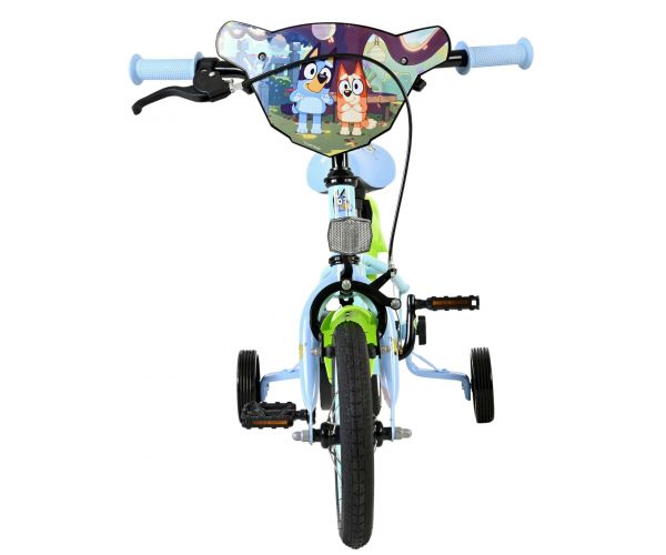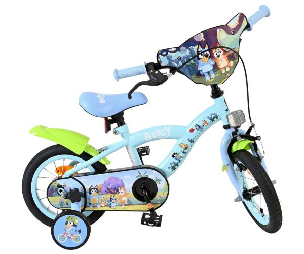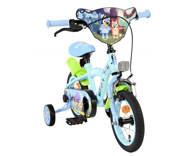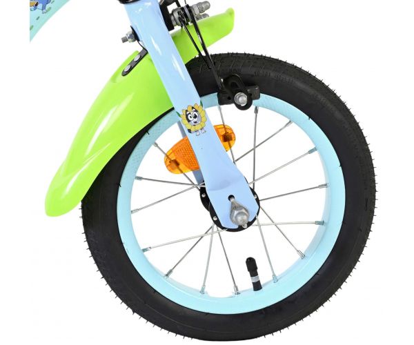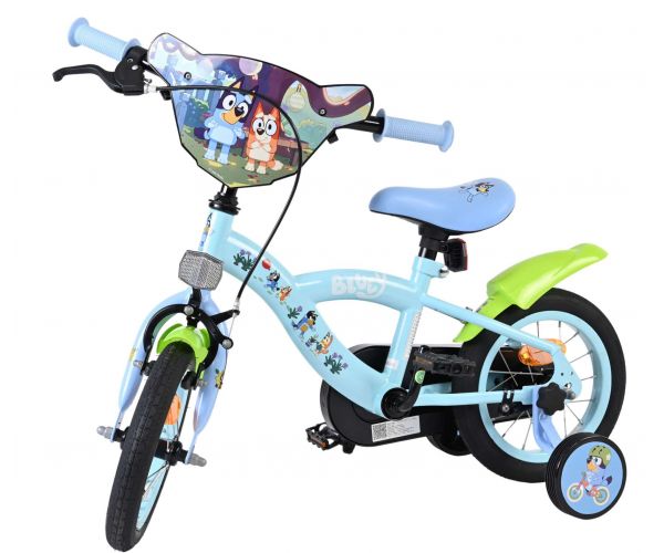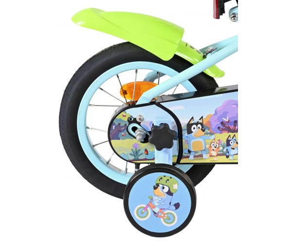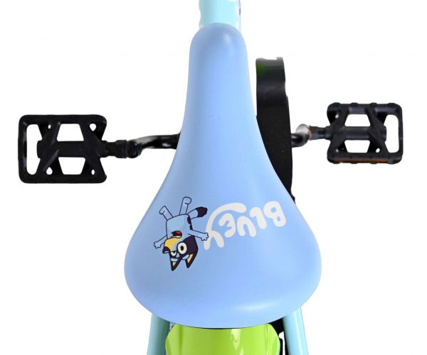 Stap op en beleef de leukste avonturen met de Volare Bluey 12 inch kinderfiets! Deze prachtige lichtblauwe fiets is speciaal ontworpen voor jonge Bluey-fans en combineert veiligheid, comfort én vrolijk design. Overal op de fiets vind je vrolijke afbeeldingen van Bluey, met als blikvanger het voorplaatje op het stuur dat meteen de aandacht trekt.