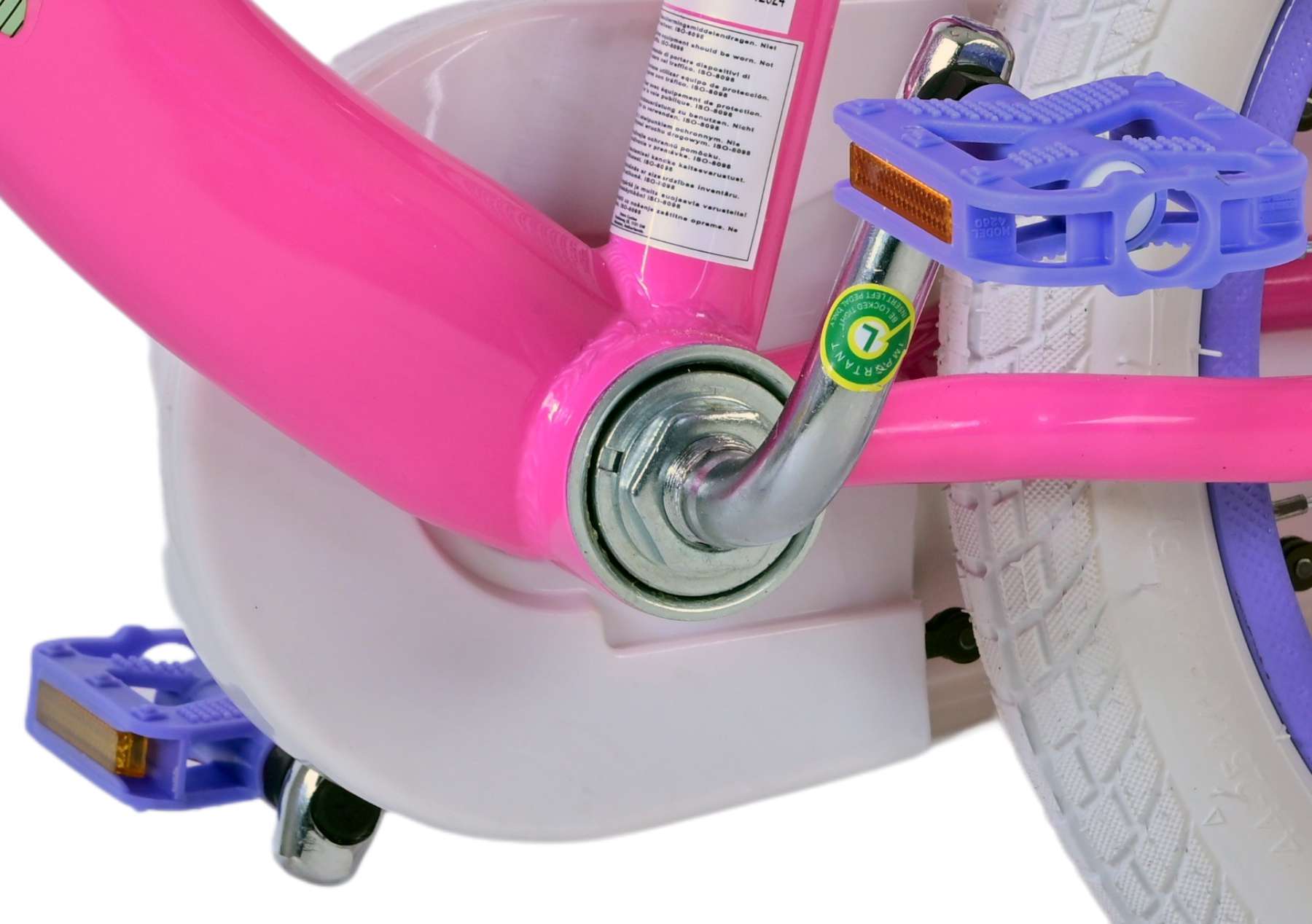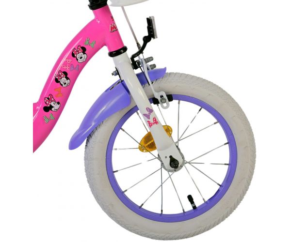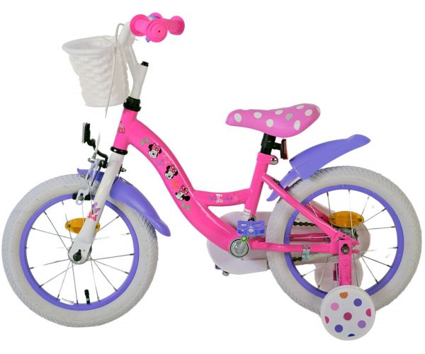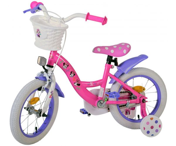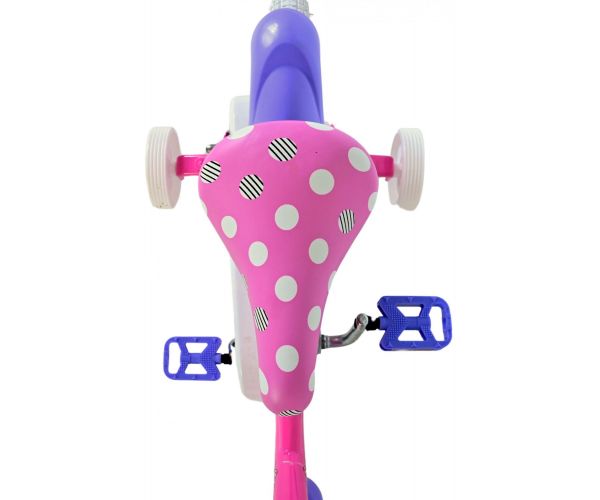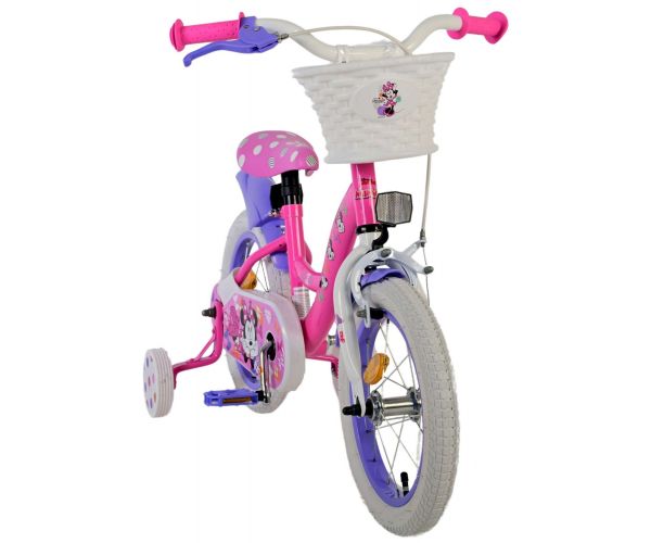 Sicherheit steht an erster Stelle! Deshalb hat dieses coole Fahrrad eine Handbremse, eine Rücktrittbremse und abnehmbare Seitenräder. Außerdem hat das Fahrrad eine schöne Glocke. Auch an den Komfort wurde gedacht. Das hübsche rosa Minnie Fahrrad ist mit einem Korb ausgestattet. Um das Fahrrad so lange wie möglich zu genießen, sind der Sattel und Lenker in der Höhe verstellbar.