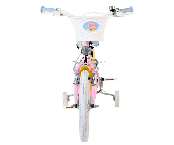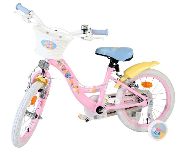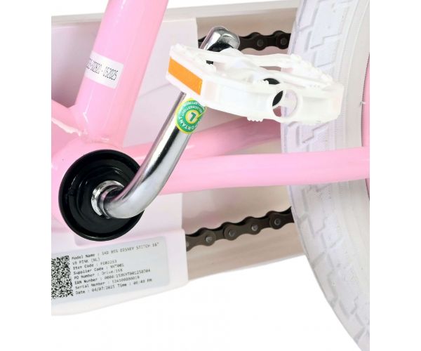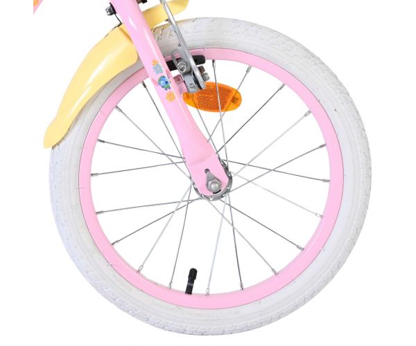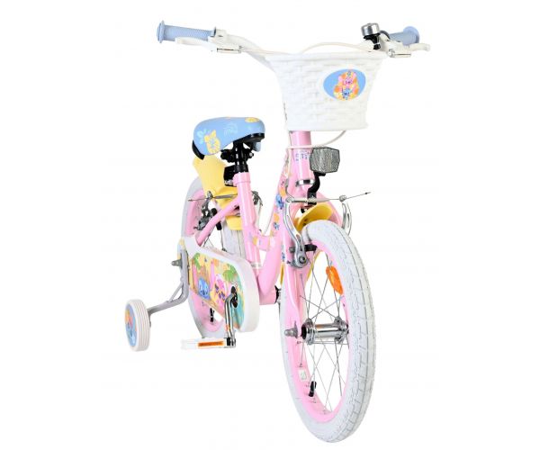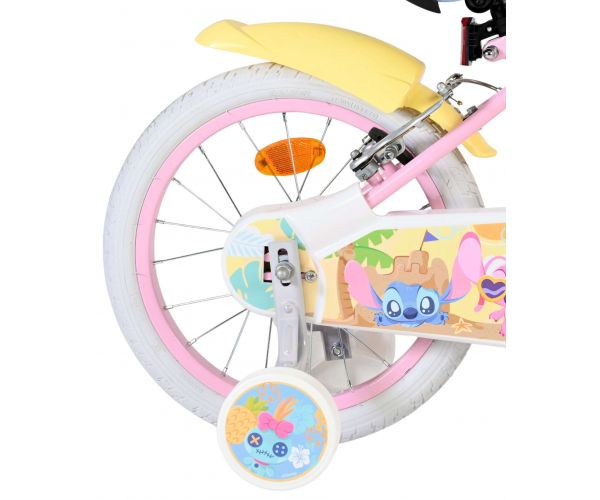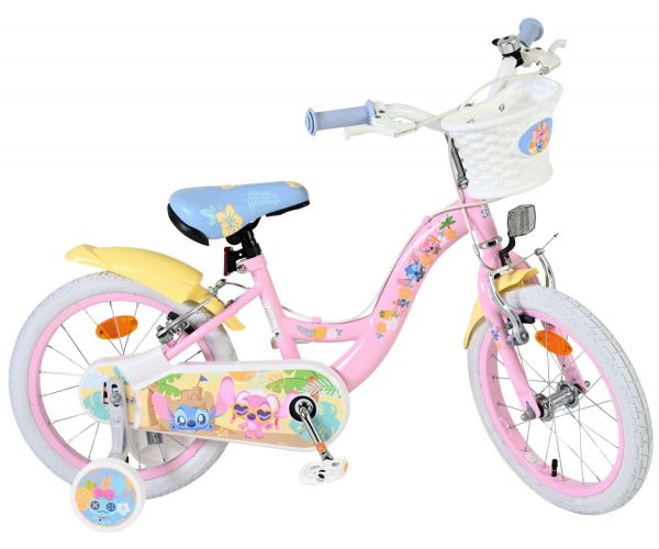 De Disney Stitch 16 inch kinderfiets is een echte blikvanger! Met haar vrolijke lichtroze frame en zonnig gele spatborden brengt deze fiets meteen een glimlach op ieders gezicht. Het leuke mandje voorop maakt de fiets extra speels en ideaal om favoriete spulletjes mee te nemen.