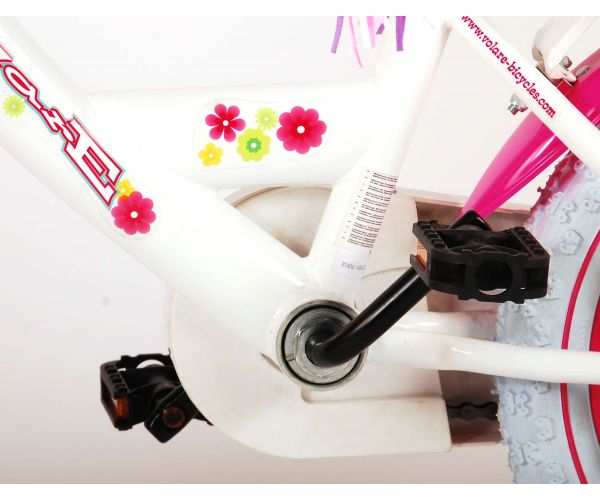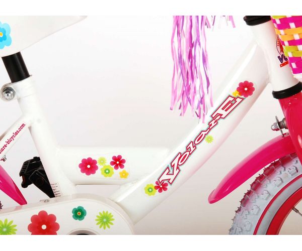Sicherheit geht vor! Deshalb hat dieses coole Fahrrad eine Handbremse, eine Rücktrittbremse und einen geschlossenen Kettenkasten. Außerdem hat das Fahrrad abnehmbare Seitenräder, Reflektoren in den Pedalen und eine schöne Klingel. Auch an den Komfort wurde gedacht. Das hübsche geblümte weiße Volare-Fahrrad hat einen Puppensitz unter dem Sattel, einen Korb zum Transportieren aller Sachen, einen superstabilen Rahmen und eine lustige Verzierung am Lenker. Damit Sie so lange wie möglich Freude an Ihrem Fahrrad haben, sind Sattel und Lenker höhenverstellbar. Kurzum: ein hochwertiges Fahrrad, an dem Ihr Kind jahrelang Freude haben wird!