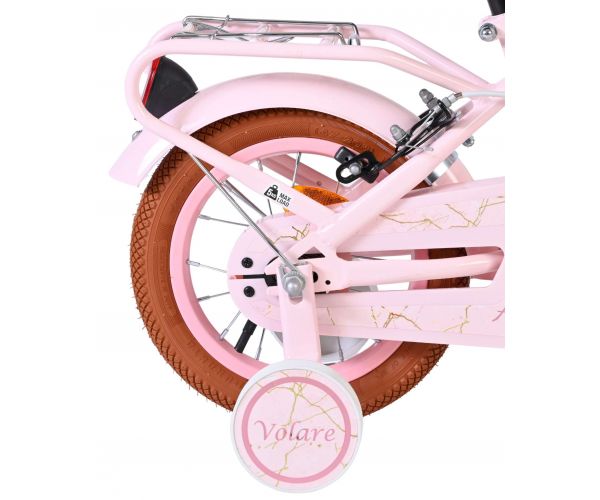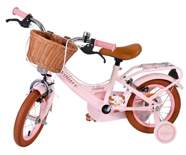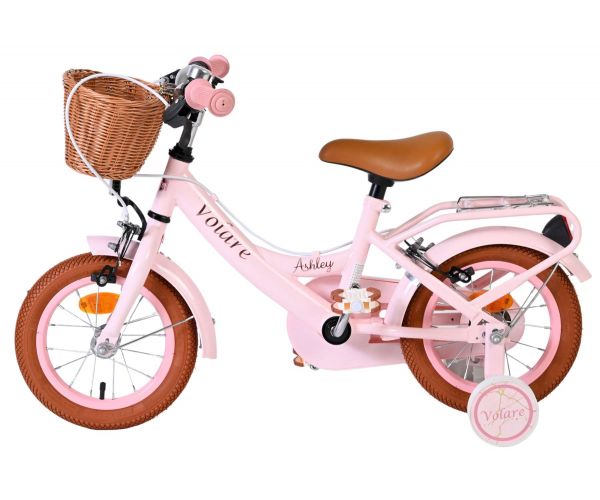 De Volare Ashley 12 inch kinderfiets is een vrolijke en comfortabele fiets die helemaal klaar is voor de eerste fietservaringen van je kind. Deze mooie roze fiets is uitgerust met twee handremmen (geen terugtraprem), waardoor je kind op een veilige en vertrouwde manier leert remmen. De afneembare zijwielen zorgen voor extra stabiliteit in het begin en kunnen eenvoudig verwijderd worden zodra je kind klaar is om zelfstandig te fietsen.