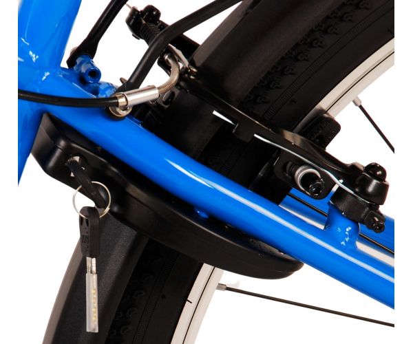 Sicherheit steht an erster Stelle! Deshalb hat dieses coole Fahrrad keine Rücktrittbremse, sondern zwei Handbremsen, 21 Gänge, Reflektoren in den Rädern und batteriebetriebene Vorder- und Rücklichter. Auch an den Komfort wurde gedacht. Das schöne dunkelblaue Volare hat einen praktischen Gepäckträger, auf dem du alle deine Sachen mühelos transportieren kannst, einen bequemen, weichen Sattel, einen Ständer, damit dein Fahrrad immer ordentlich steht, und ein stabiles Schloss. Um möglichst lange Freude an dem Fahrrad zu haben, hat es eine extra lange Sattelstütze, so dass das Fahrrad noch länger mit dem Kind mitwächst. Bitte beachten Sie, dass der Lenker nicht in der Höhe verstellbar ist!