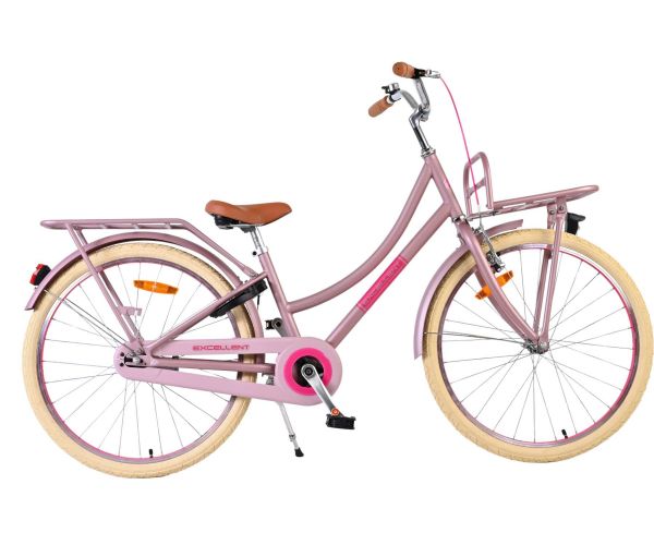 De Volare Excellent 24 inch meisjesfiets is de perfecte combinatie van stijl en functionaliteit. Het matroze frame geeft de fiets een moderne en stoere uitstraling, terwijl het praktische voorrek ideaal is om een tas of andere spullen mee te nemen.