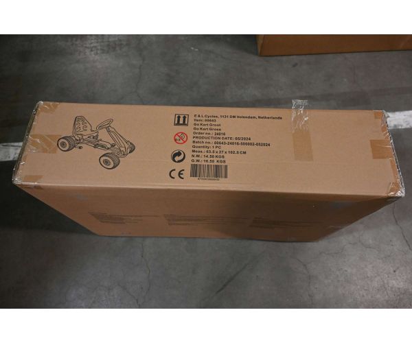 Volare Go Kart Rennwagen groß mit Luftreifen. Dieser Volare Go Kart ist einer der wirklich harten Jungs. Der Go Kart ist mit extra breiten Luftreifen mit Kunststofffelgen ausgestattet. Der Kettenschutz ist geschlossen. Der Go Kart hat einen Freilauf und eine Handbremsbremse. Darüber hinaus ist es in der Länge einstellbar.