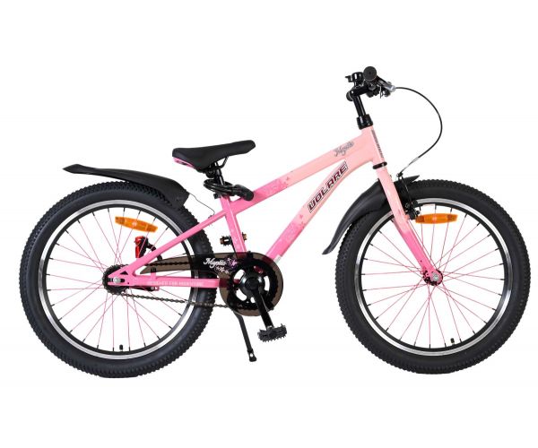 Dankzij de verlichting aan de voor- en achterkant is je kind ook goed zichtbaar in het donker of bij slecht weer. Het sportieve karakter van de Volare Mystic wordt versterkt door de roze spaken, die de fiets een unieke en opvallende uitstraling geven. Voor extra gemak en veiligheid is de fiets voorzien van een slot en een duidelijke bel.