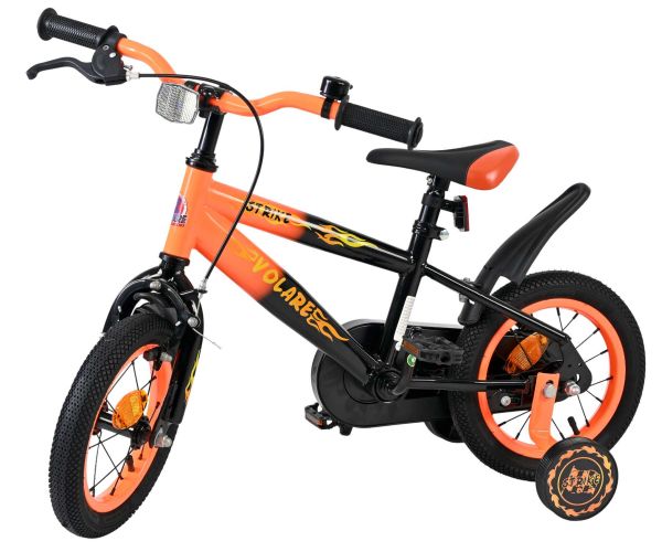 De Volare Strike 12 inch kinderfiets is een stoere fiets voor jonge racers die klaar zijn voor hun eerste avonturen op twee wielen. Met zijn sportieve zwart-oranje design en robuuste uitstraling is deze fiets een echte blikvanger.