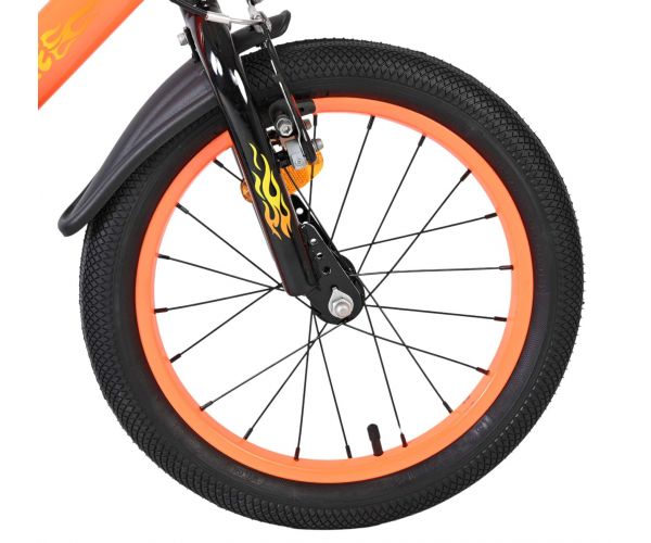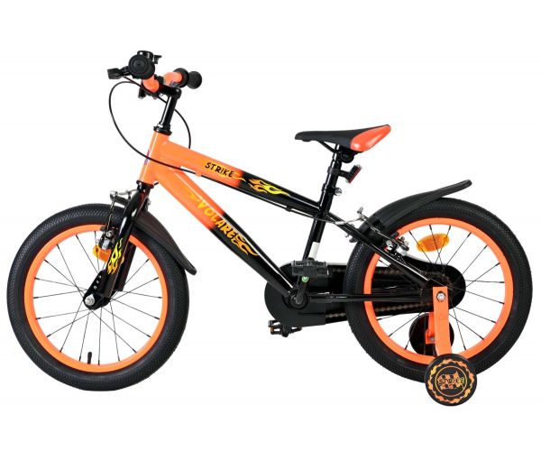De Volare Strike 16 inch kinderfiets is de ideale fiets voor jonge avonturiers die graag in stijl op pad gaan. Met zijn stoere zwart-oranje design en sportieve uitstraling is deze fiets een echte blikvanger voor elke kleine fietser.