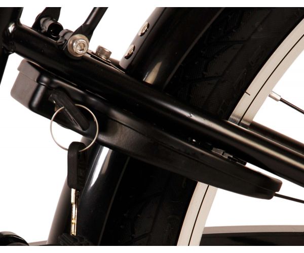 Sicherheit geht vor! Deshalb hat dieses coole Fahrrad eine Handbremse, eine Rücktrittbremse und batteriebetriebene Lichter an Vorder- und Hinterrad. Außerdem hat das Fahrrad eine schöne Klingel und Reflektoren in den Rädern. Auch an den Komfort wurde gedacht. Das schöne schwarze Volare Fahrrad mit blauen Akzenten hat einen luxuriösen weichen Sattel und extra weiche Griffe, einen praktischen Gepäckträger und einen robusten Rahmen, der einiges aushält. Außerdem verfügt das Fahrrad über einen Ständer, damit es ordentlich an seinem Platz bleibt, und ein starkes Schloss. Um möglichst lange Freude an dem Fahrrad zu haben, hat es eine extra lange Sattelstütze, damit das Fahrrad noch länger mit dem Kind mitwächst, und der Lenker ist in der Höhe verstellbar.