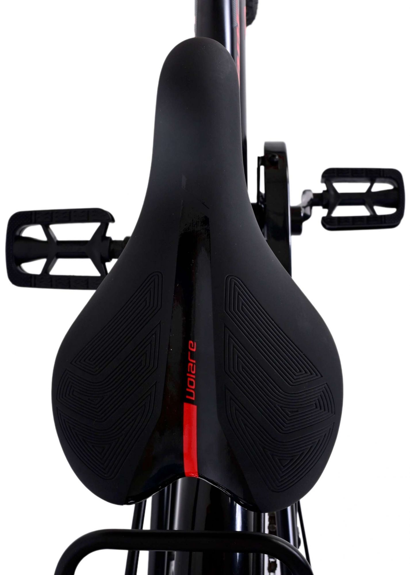 Sicherheit steht an erster Stelle! Deshalb hat dieses coole Fahrrad eine Handbremse und eine Rücktrittbremse sowie batteriebetriebene Lichter vorne und hinten. Außerdem hat das Fahrrad eine schöne Klingel und Reflektoren in den Rädern. Auch an den Komfort wurde gedacht. Das schöne rote Volare-Fahrrad hat einen luxuriösen weichen Sattel und extra weiche Griffe, einen praktischen Gepäckträger und einen stabilen Rahmen, der einiges aushalten kann. Außerdem verfügt das Fahrrad über eine 3-Gang-Schaltung von Shimano, einen Ständer, damit es ordentlich an seinem Platz bleibt, und ein starkes Schloss. Um möglichst lange Freude an dem Fahrrad zu haben, ist es mit einer extra langen Sattelstütze ausgestattet, so dass das Fahrrad mit dem Kind mitwächst, und der Lenker ist höhenverstellbar.