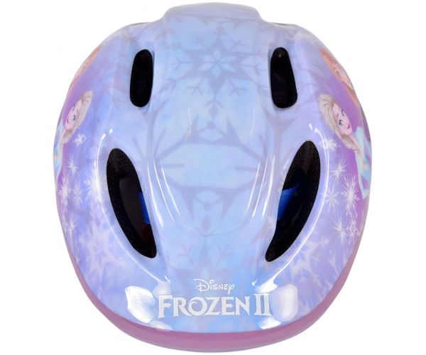 Volare Kinderfietsen beschikt over een grote collectie licentie helmen. Een daarvan is deze prachtige Disney Frozen fietshelm. De mooie blauwe kleur en de Frozen decoraties geven de helm een perfecte uitstraling. Met de draaiknop is de hoofdomtrek van de helm verstelbaar van 52 tot 56 cm. Daarbij is de onderkant van de helm ook bedekt. De helm weegt slechts 200 gram. Dat maakt hem extra licht en dus makkelijk te dragen. De helm is naar de strengste eisen van het TÜV/GS goedgekeurd.