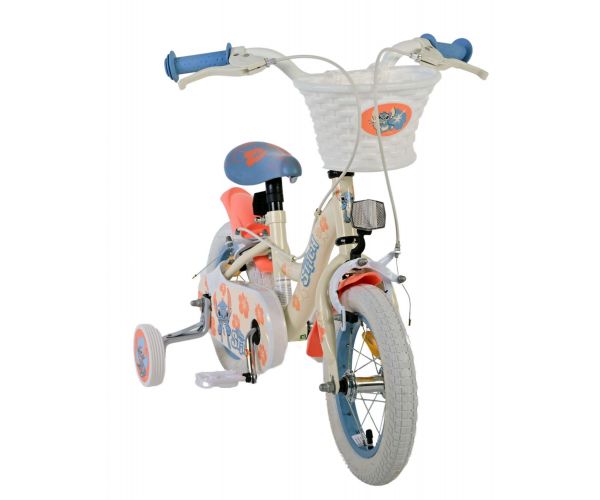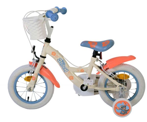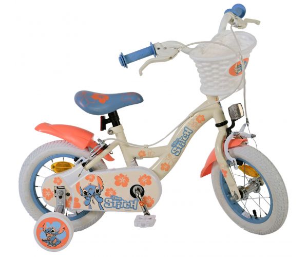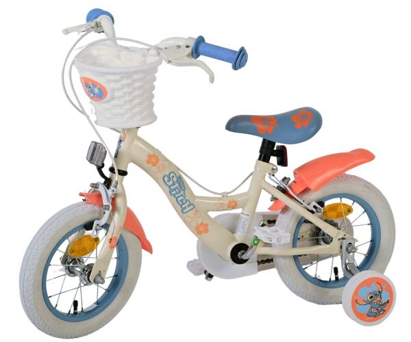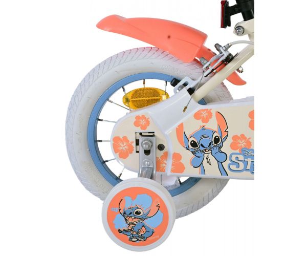 Disney Stitch Kinderfiets - Meisjes - 12 inch - Twee handremmen - Crème Koraal Blauw