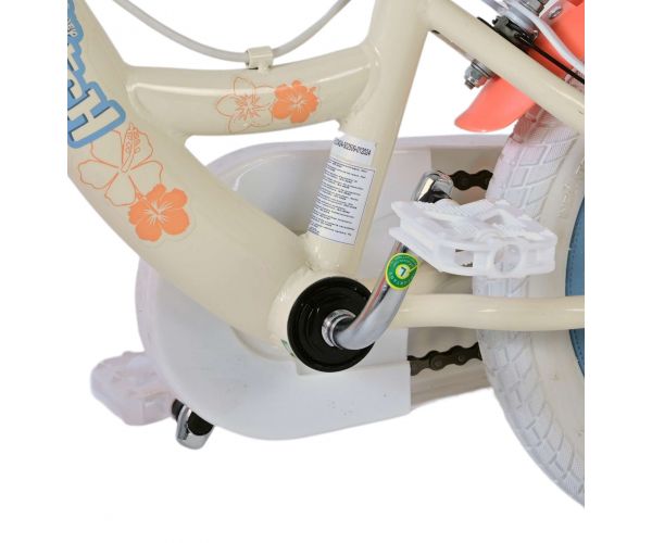 Veiligheid staat voorop! Daarom heeft deze gave fiets twee handremmen (geen terugtraprem) en afneembare zijwieltjes. Daarnaast heeft de fiets een leuke bel. Ook aan het comfort is gedacht. De mooie Crèmekleurige en tropische Stitch fiets is voorzien van een mandje. Om zo lang mogelijk van de fiets te kunnen genieten zijn het zadel en stuur in hoogte verstelbaar.