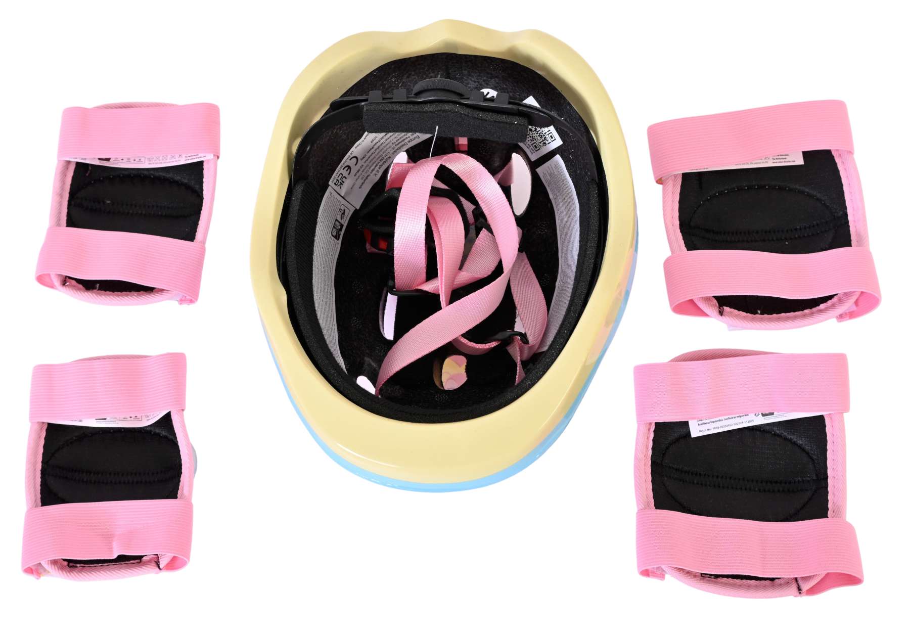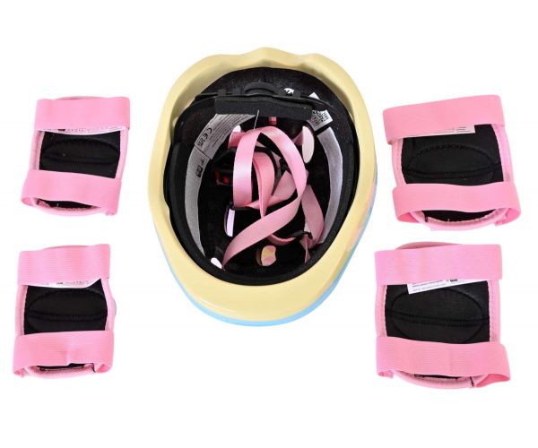 De set bestaat uit kniebeschermers, elleboogbeschermers en een helm, zodat de belangrijkste zones goed beschermd zijn bij een val of stoot. Alles wordt geleverd in een leuke tas, waardoor je de protectie eenvoudig kunt meenemen naar school, het park of op vakantie en na gebruik weer netjes kunt opbergen.
