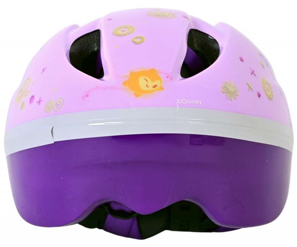 Volare Kinderfietsen beschikt over een grote collectie licentie helmen. Een daarvan is deze prachtige Disney WISH fietshelm. De mooie paarse kleur en de WISH decoraties geven de helm een perfecte uitstraling. Met de draaiknop is de hoofdomtrek van de helm verstelbaar van 52 tot 56 cm. Daarbij is de onderkant van de helm ook bedekt. De helm weegt slechts 200 gram. Dat maakt hem extra licht en dus makkelijk te dragen. De helm is naar de strengste eisen van het TÜV/GS goedgekeurd.