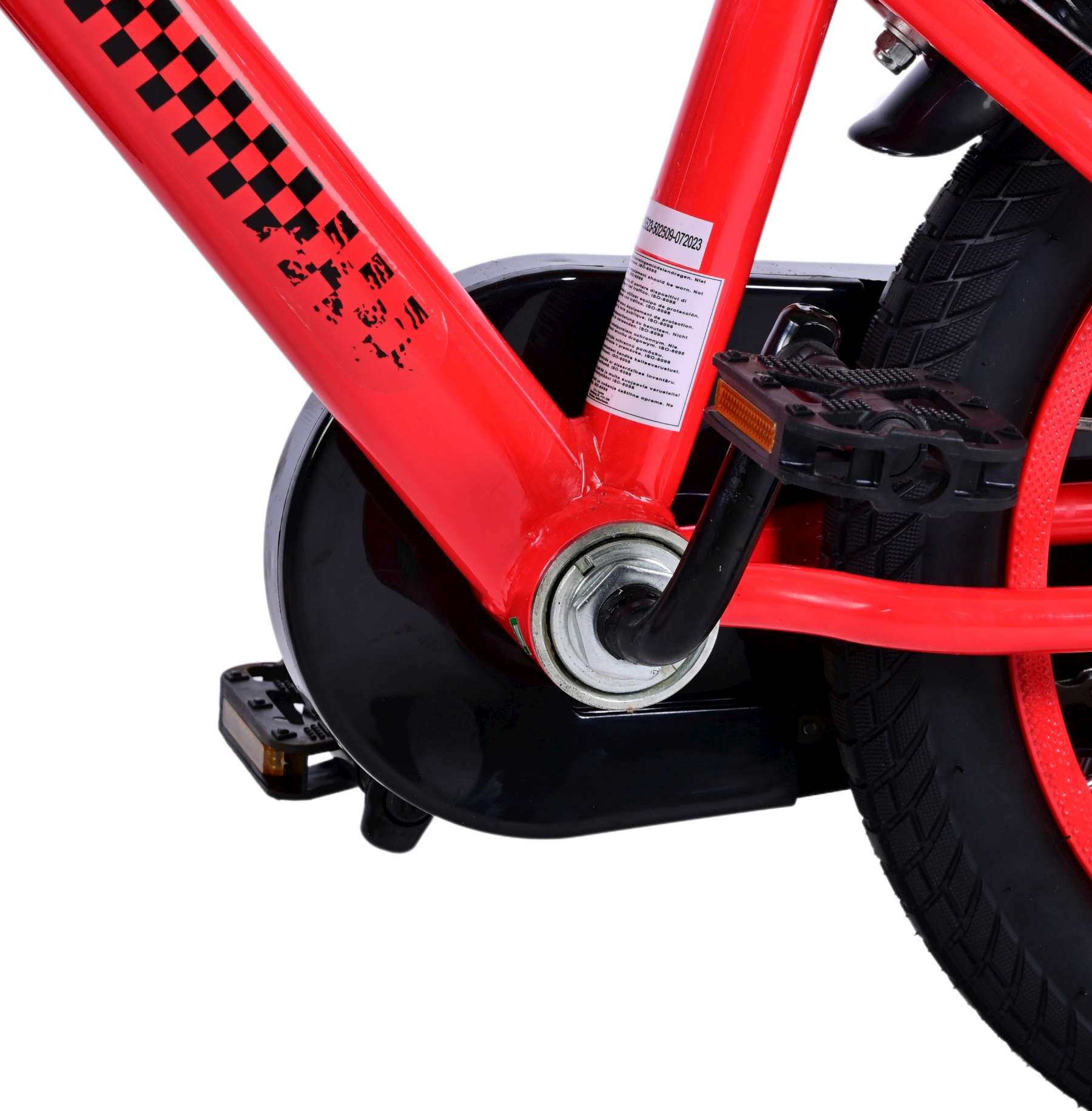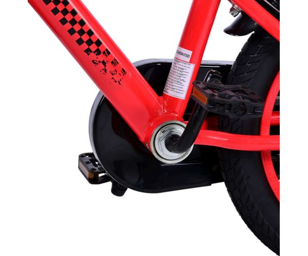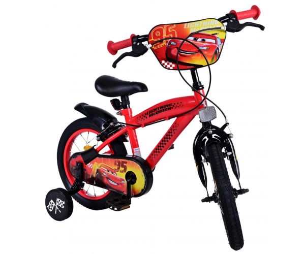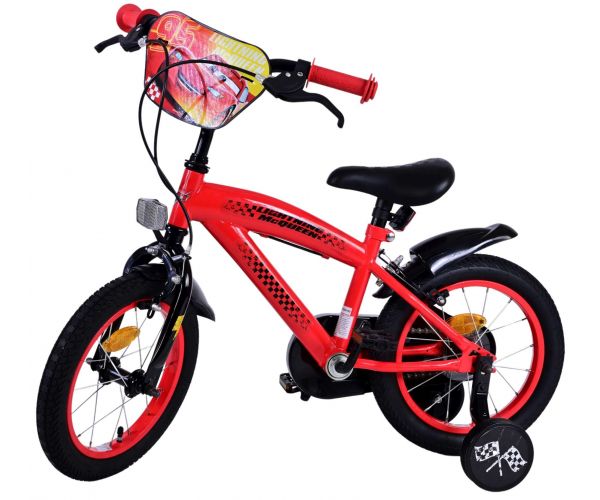 Sikkerhed kommer først! Derfor har denne seje cykel to håndbremser (ingen bagpedalbremse) og en lukket kædeskærm. Desuden har cyklen aftagelige sidehjul til hurtig indlæring på cyklen og reflekser i pedalerne. Der er også tænkt på komfort. Den smukke røde Cars-cykel har en vandflaskeholder under sadlen, en behagelig blød sadel og et ekstra robust stel, der kan tåle at blive slået. For at du kan nyde cyklen så længe som muligt, kan sadlen og styret justeres i højden. Kort sagt: en cykel i topkvalitet, som dit barn vil have glæde af i mange år fremover!