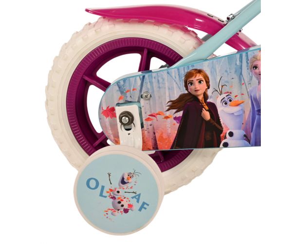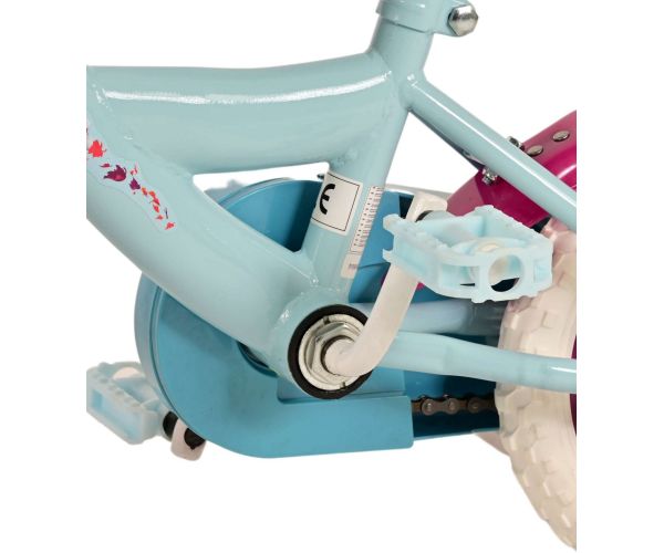 Sikkerhed kommer først! Derfor har denne seje cykel et pedalsystem, som barnet kan cykle fremad og baglæns med, en lukket kædeskærm og aftagelige sidehjul. Der er også tænkt på komforten. Den smukke lyseblå Disney Frozen-cykel med lyserøde accenter har luftfrie skumdæk, der ikke kan punktere. For at du kan nyde cyklen så længe som muligt, kan sadlen og styret justeres i højden.