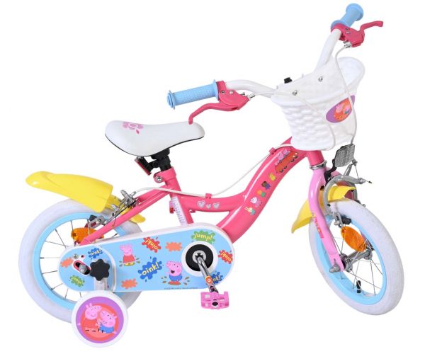 De Volare Peppa Pig 14 inch kinderfiets is perfect voor kleine Peppa-fans die graag op avontuur gaan! Deze vrolijke fiets is uitgevoerd in zachte Peppa Pig-kleuren en heeft een leuk mandje aan het stuur, ideaal om een favoriete knuffel of speelgoed mee te nemen tijdens elke rit.