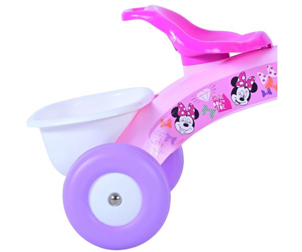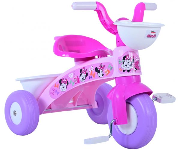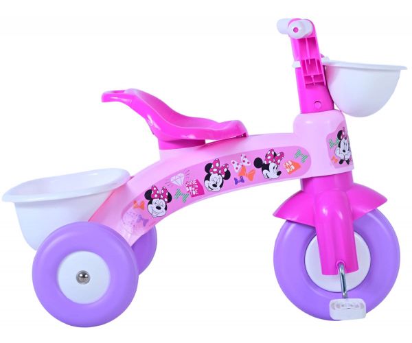 Den trehjulede cykel er lyserød og har smukke Disney Minnie-billeder. Den trehjulede cykel har en kurv foran og bagpå, så dit barn kan tage sit yndlingslegetøj med. Den er egnet til børn mellem 1 og 3 år og har en bæreevne på 25 kg.
