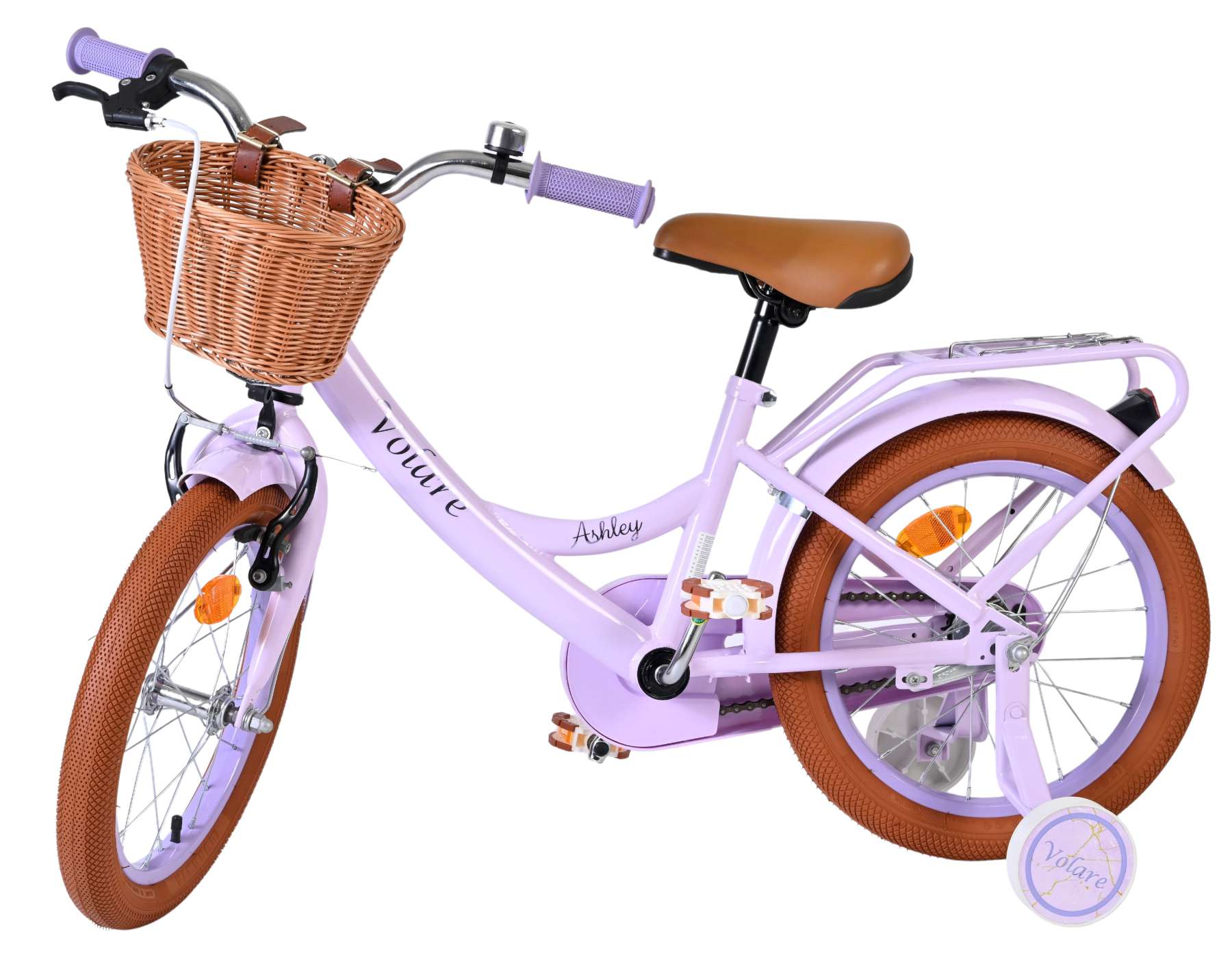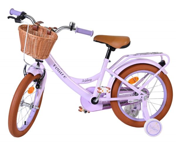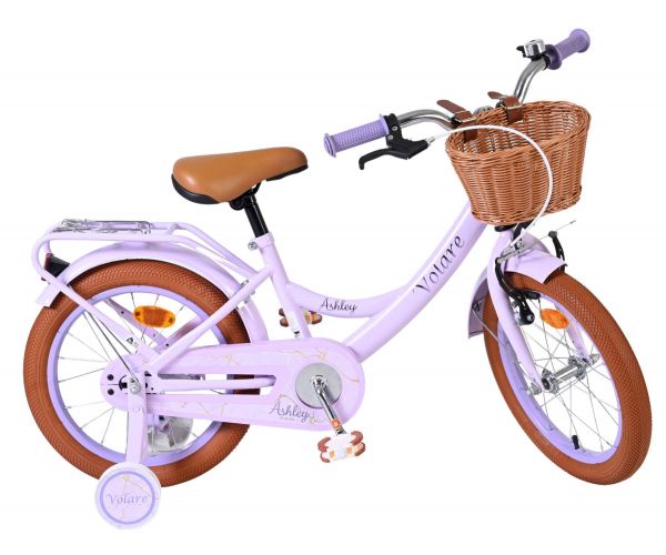 Ook aan gebruiksgemak is gedacht. Het mandje aan de voorkant is ideaal voor het meenemen van kleine spulletjes en de stevige achterdrager zorgt voor extra praktische mogelijkheden. Met zijn frisse lila kleur en complete afwerking is de Volare Ashley 16 inch kinderfiets een betrouwbare en leuke fiets voor elke jonge fietser.