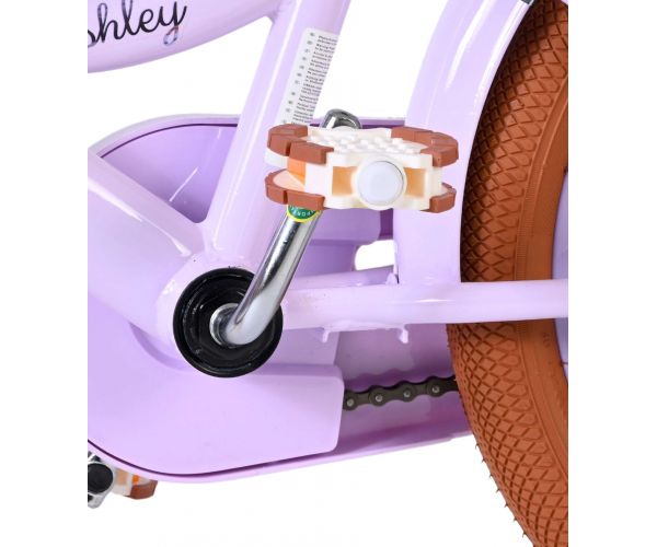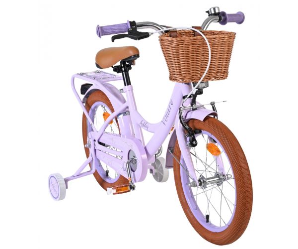 De Volare Ashley 16 inch kinderfiets is een vrolijke en comfortabele fiets die perfect aansluit bij kinderen die al wat zekerder fietsen. Deze mooie lila fiets is uitgerust met een terugtraprem en één handrem, zodat je kind op een natuurlijke manier leert remmen en extra controle heeft tijdens het fietsen. De afneembare zijwielen bieden ondersteuning waar nodig en kunnen eenvoudig verwijderd worden zodra je kind volledig zelfstandig fietst.