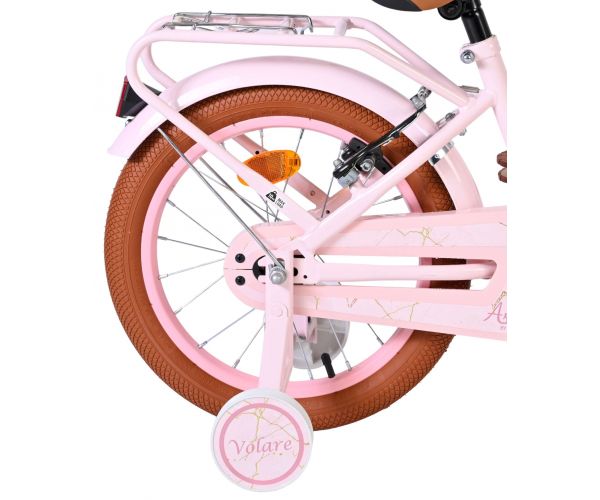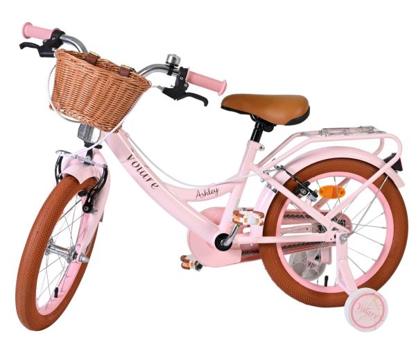 De Volare Ashley 16 inch kinderfiets is een vrolijke en comfortabele fiets die perfect aansluit bij kinderen die al wat zekerder fietsen. Deze mooie roze fiets is uitgerust met twee handremmen (geen terugtraprem), zodat je kind op een gecontroleerde en vertrouwde manier leert remmen. De afneembare zijwielen bieden extra ondersteuning waar nodig en kunnen eenvoudig verwijderd worden zodra je kind volledig zelfstandig fietst.
