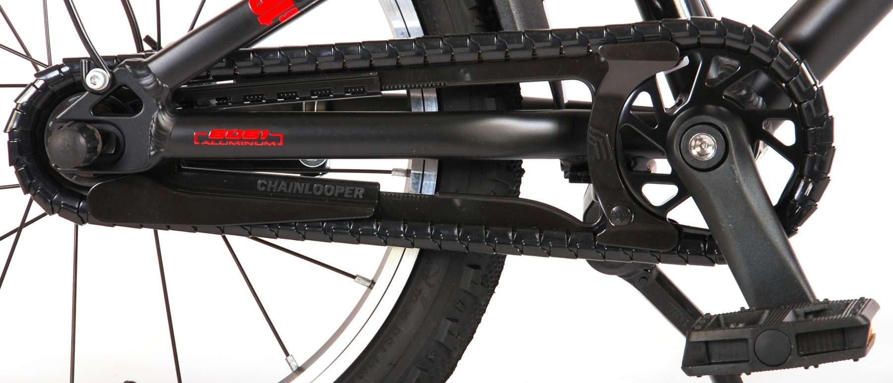 Sikkerhed kommer først! Derfor har denne seje cykel en håndbremse og en bagpedalbremse. Cyklen har også reflekser i hjulene. Vi har også tænkt på komfort. Den smukke sorte og røde Blaster-cykel har et stativ, så din cykel forbliver pæn og ryddelig, og et ekstra let aluminiumsstel. For at sikre, at du kan nyde din cykel så længe som muligt, er sadelpinden ekstra lang, så cyklen holder endnu længere, og styret kan justeres i højden.