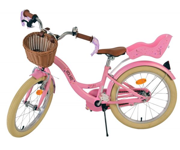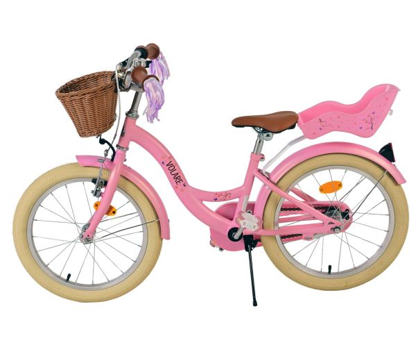 Sikkerheden kommer i første række! Derfor har denne seje cykel en håndbremse og en bagpedalbremse og en lukket kædeskærm. Der er også tænkt på komforten. Den smukke lyserøde Volare-cykel har et dukkesæde, en behagelig blød sadel og en praktisk kurv og glade håndtagsdekorationer. For at du kan nyde cyklen så længe som muligt, kan sadlen og styret justeres i højden. Leveres komplet med alle de materialer, der er nødvendige for at samle cyklen!