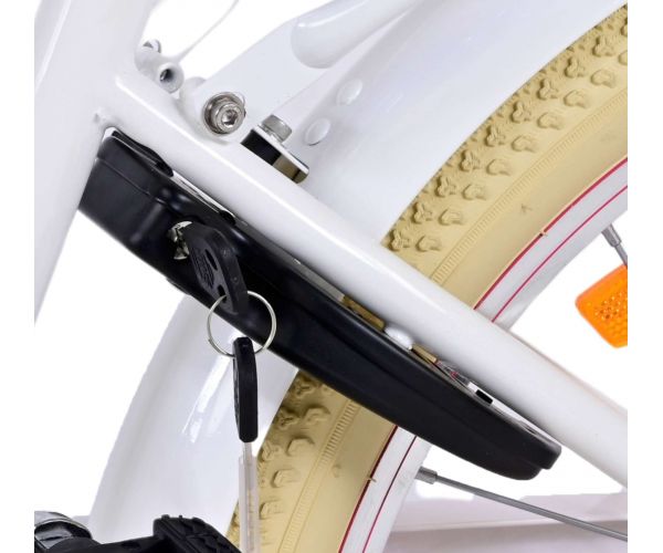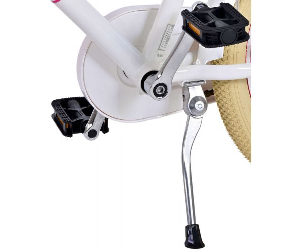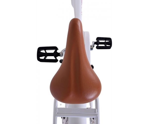 Sikkerhed kommer først! Derfor har denne seje cykel en håndbremse og en bagpedalbremse og en lukket kædeskærm. Desuden har cyklen belysning for og bag og en flot klokke. Der er også tænkt på komfort. Den smukke hvid Volare-cykel har en praktisk forreste bagagebærer, en bagagebærer integreret i stellet og en luksuriøs blød sadel. For at du kan nyde cyklen så længe som muligt, kan sadlen og styret justeres i højden.