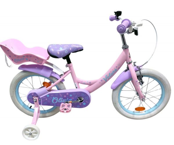 De Volare Olivia 16 inch kinderfiets is een schattige en stijlvolle fiets voor jonge meiden die vol trots willen fietsen. Met haar zachte roze kleur, paarse handvaten, zadel en spatborden is deze fiets een echte blikvanger.