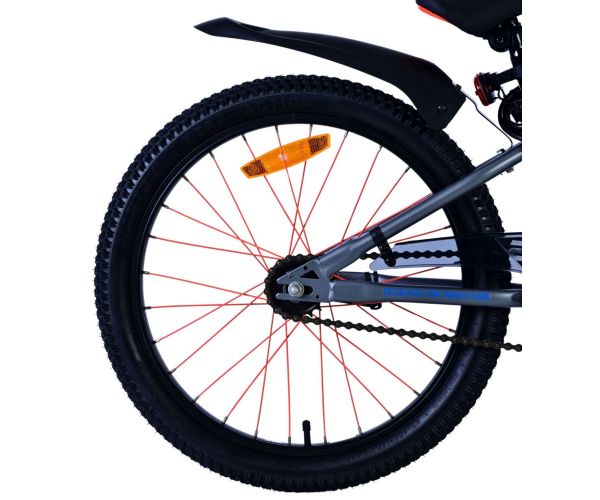 Leder du efter den perfekte cykel til dit barn? Denne sporty 20-tommer børnecykel i en cool blågrå farve har alt, hvad du leder efter. Det markante design med farvede eger giver et legende look, mens det robuste stativ og reflekserne i hjulene giver ekstra sikkerhed, selv i mørke. Takket være den justerbare sadel vokser cyklen nemt med dit barn, så de kan have glæde af deres nye cykel i lang tid.