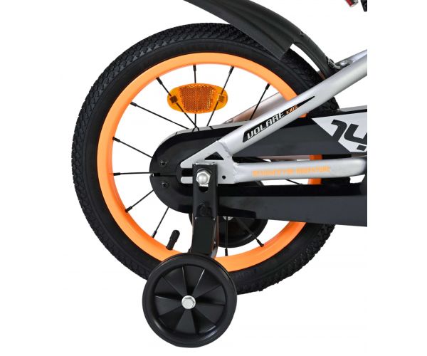 Veiligheid staat voorop! Daarom heeft deze gave fiets een handrem en terugtraprem, een gesloten kettingkast en afneembare zijwieltjes. Daarnaast heeft de fiets een leuke bel. Ook aan het comfort is gedacht. De mooie grijze Volare fiets met zwarte accenten heeft een luxe zacht zadel, een strak frame dat wel tegen een stootje kan, en extra lange spatborden om al het vuil tegen te houden. Om zo lang mogelijk van de fiets te kunnen genieten heeft de fiets een extra lange zadelpen waardoor de fiets nóg langer meegroeit. Wordt geleverd inclusief al het montagemateriaal dat nodig is om de fiets in elkaar te zetten!