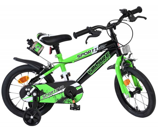 Volare Sportivo Kinderfiets - Jongens - 14 inch - Groen Zwart - Twee Handremmen