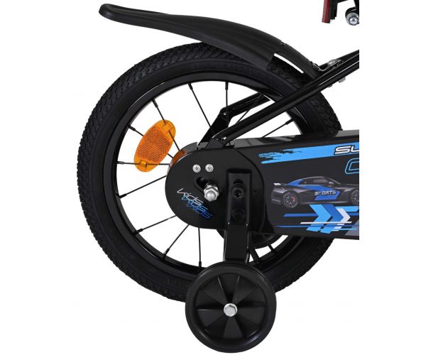 Veiligheid staat voorop! Daarom heeft deze gave fiets een handrem en terugtraprem, een gesloten kettingkast en afneembare zijwieltjes. Daarnaast heeft de fiets reflectoren in de wielen, voor- en achterop de fiets en een leuke bel. Ook aan het comfort is gedacht. De mooie zwarte Volare fiets met blauwe accenten heeft een zacht zadel, een tijdloos design, en een uniek frame dat wel tegen een stootje kan. Om zo lang mogelijk van de fiets te kunnen genieten zijn het zadel en stuur in hoogte verstelbaar. Wordt geleverd inclusief al het montagemateriaal dat nodig is om de fiets in elkaar te zetten!