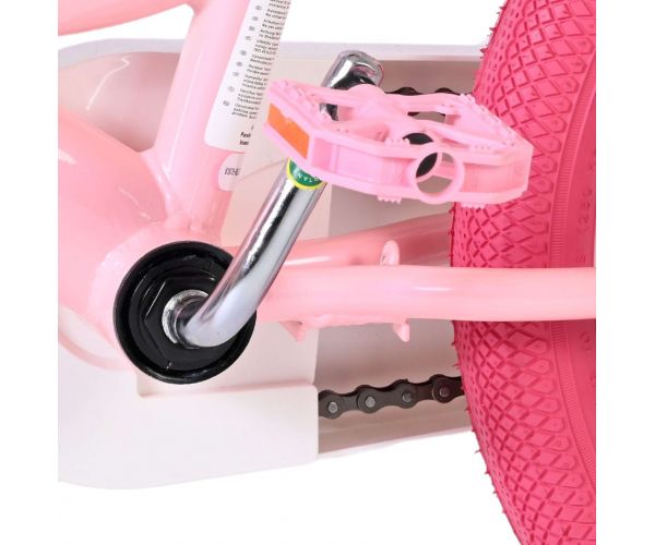 Met de afneembare zijwielen leren kinderen stap voor stap zelfstandig fietsen. De roze banden geven de fiets een vrolijke en stijlvolle look. Voorop zit een handig mandje en achterop een poppenzitje, ideaal om favoriete speelgoed mee te nemen. Bovendien is de fiets voorzien van reflectoren voor, achter en in de wielen, zodat je kind goed zichtbaar is. De bel maakt het geheel helemaal af.