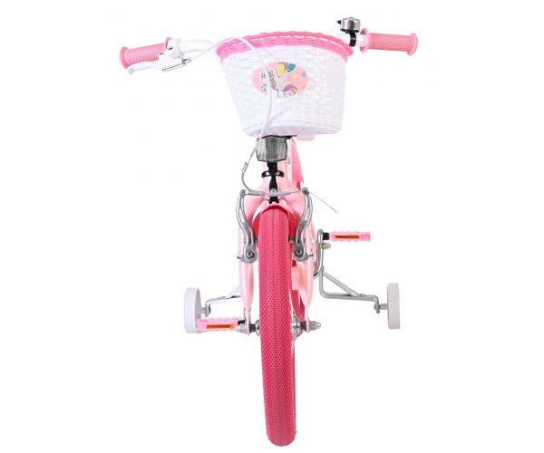 Met de afneembare zijwielen leren kinderen stap voor stap zelfstandig fietsen. De roze banden geven de fiets een vrolijke en stijlvolle look. Voorop zit een handig mandje en achterop een poppenzitje, ideaal om favoriete speelgoed mee te nemen. Bovendien is de fiets voorzien van reflectoren voor, achter en in de wielen, zodat je kind goed zichtbaar is. De bel maakt het geheel helemaal af.