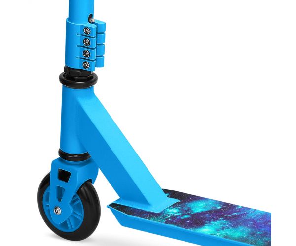 Het antislip deck met microkristallen zorgt voor maximale grip, zodat je altijd stevig staat bij het oefenen van je eerste sprongen en spins. Dankzij het lichtgewicht aluminium deck maak je eenvoudig deckspins, terwijl het stalen stuur garant staat voor kracht en duurzaamheid – precies op de plekken waar het nodig is.