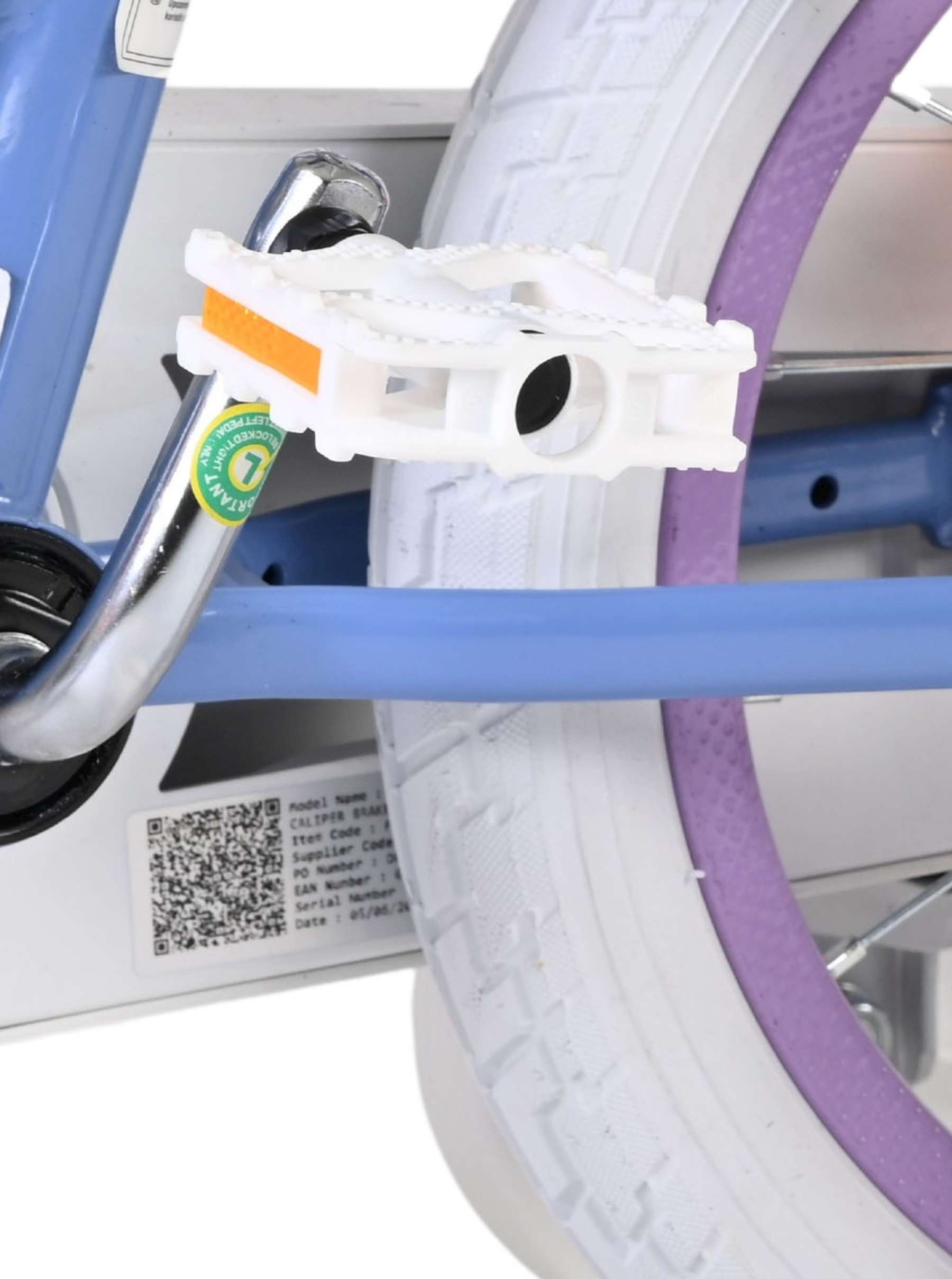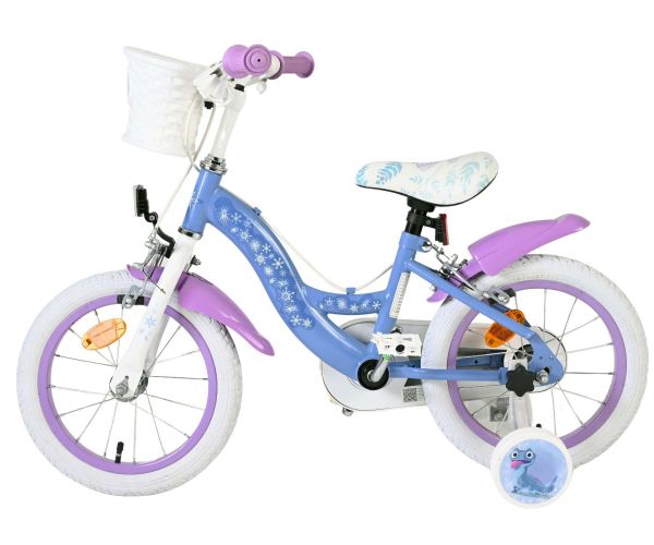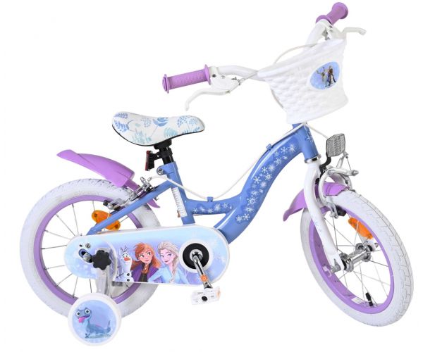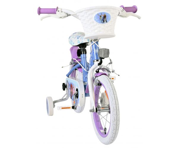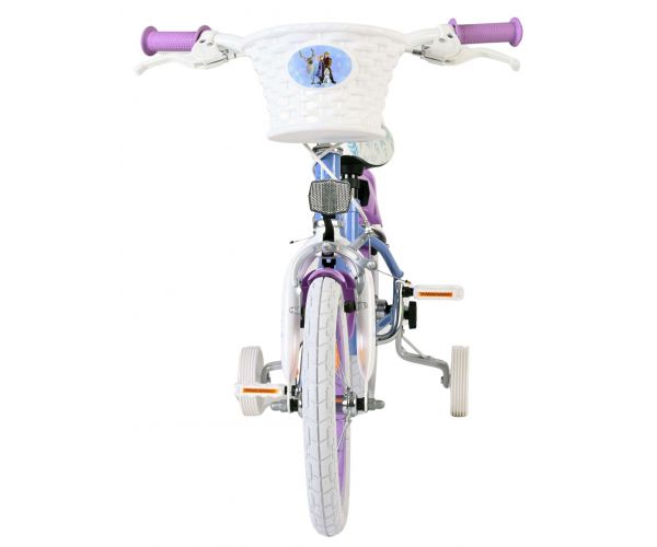 Safety comes first! Therefore, this cool bike has two hand brakes (no coaster brake) and removable training wheels. The beautiful blue purple Frozen bike is equipped with a basket. To enjoy the bike as long as possible, the saddle and handlebars are adjustable in height.