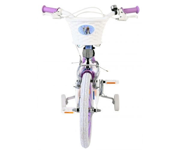 Safety comes first! Therefore, this cool bike has two hand brakes (no coaster brake) and removable training wheels. The beautiful blue purple Frozen bike is equipped with a basket. To enjoy the bike as long as possible, the saddle and handlebars are adjustable in height.