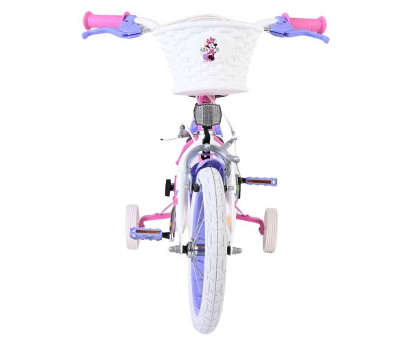 Safety comes first! That's why this cool bike has two hand brakes (no coaster brake) and removable side wheels. Comfort is also thought of. The beautiful pink Minnie bike is equipped with a basket. To enjoy the bike as long as possible, the saddle and handlebars are adjustable in height.