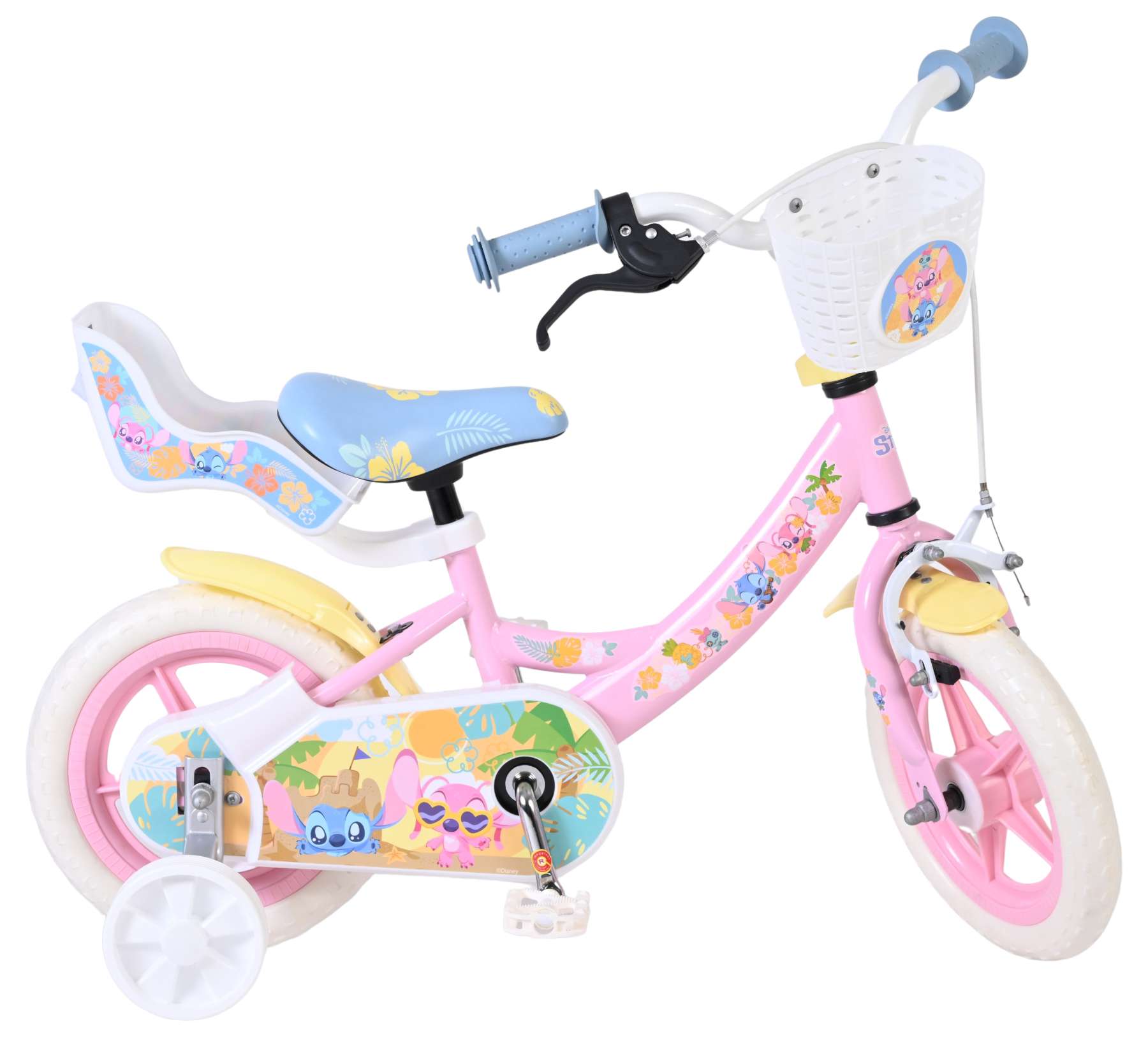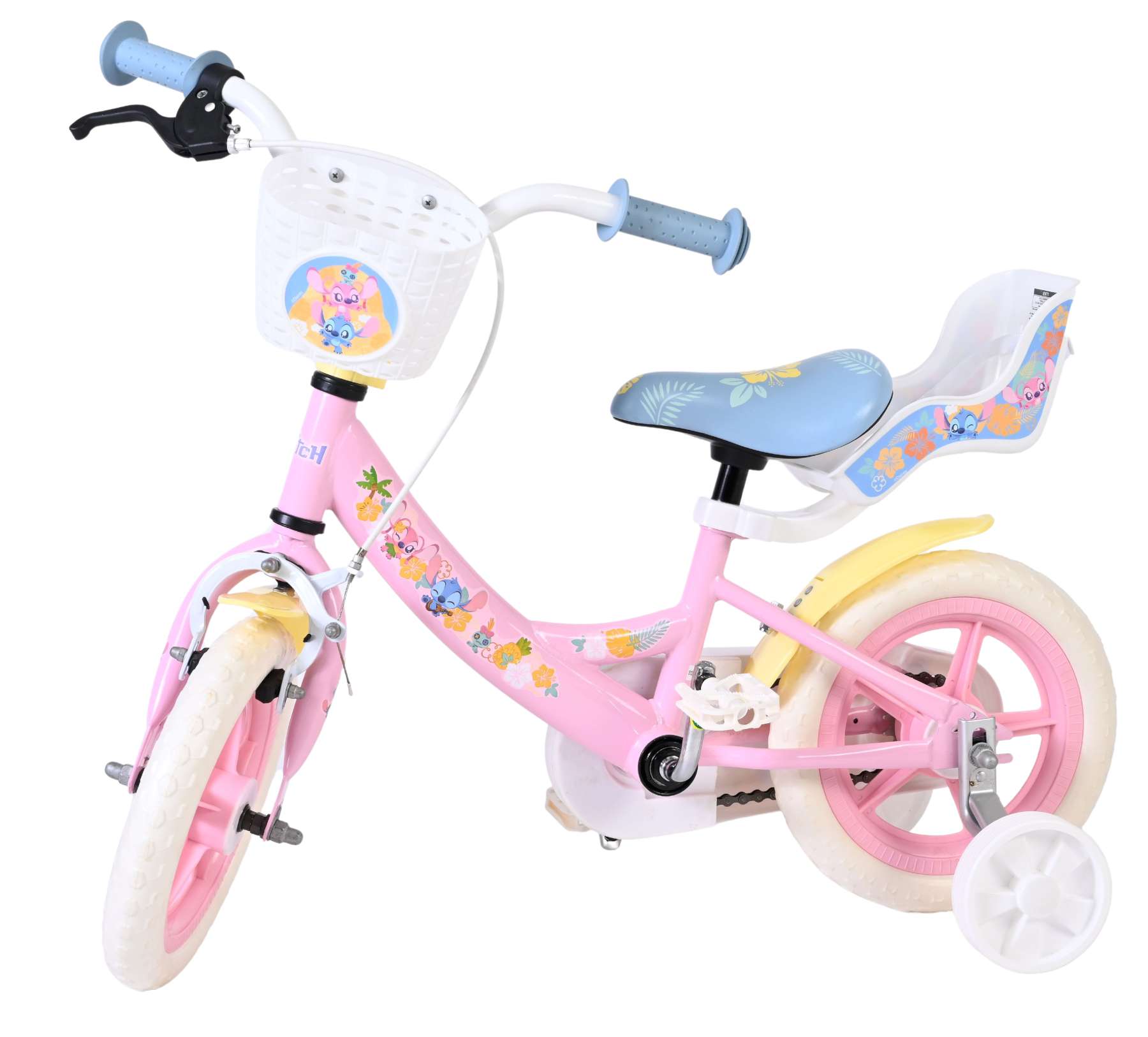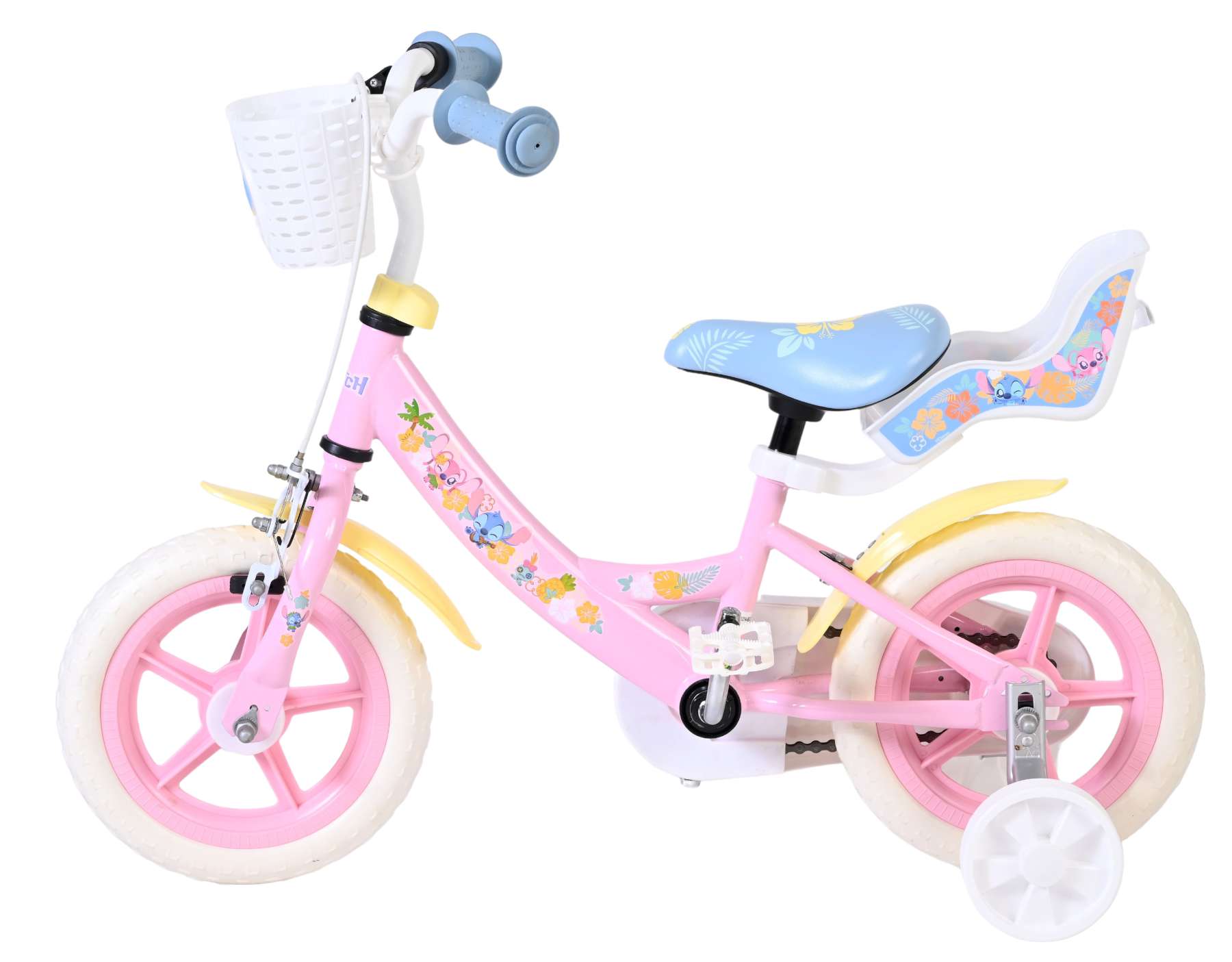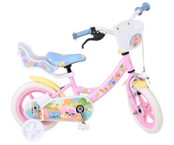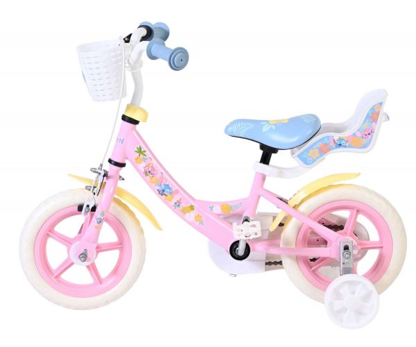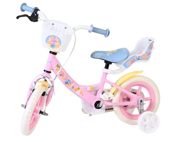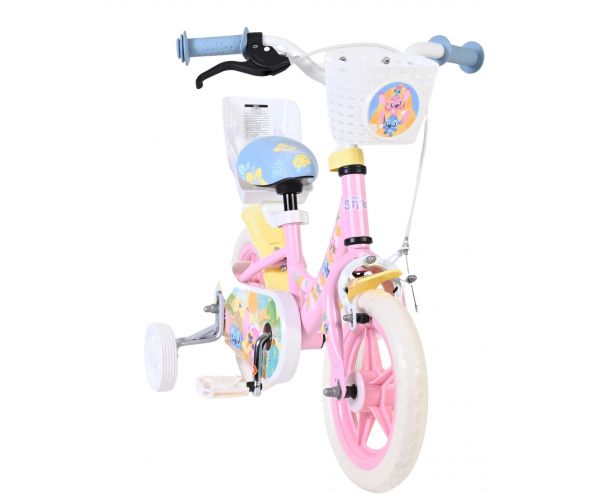 Voor extra stabiliteit tijdens het leren fietsen is de Stitch fiets voorzien van afneembare zijwielen. Daarnaast is de fiets uitgerust met een mandje aan de voorkant voor kleine spulletjes en een poppenzitje aan de achterzijde, zodat favoriete knuffels of poppen altijd mee kunnen op avontuur.