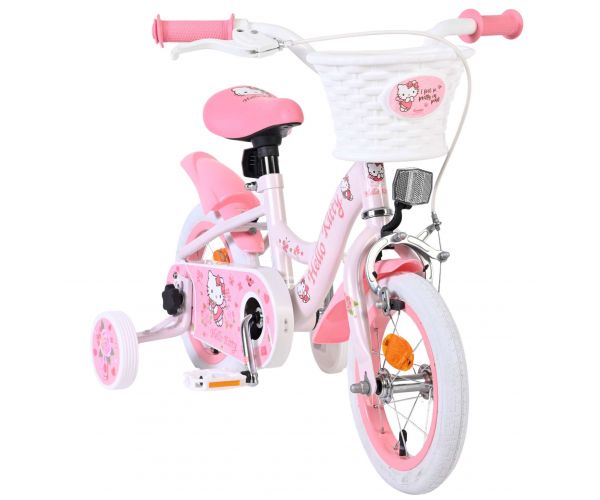Met de Hello Kitty 12 inch kinderfiets in lichtroze wordt leren fietsen een feestje. Deze vrolijke fiets is ontworpen om jonge fietsers een veilige en comfortabele start te geven, met een stabiele en kindvriendelijke opbouw.