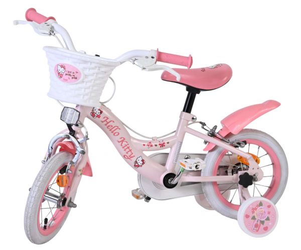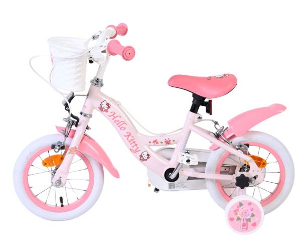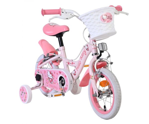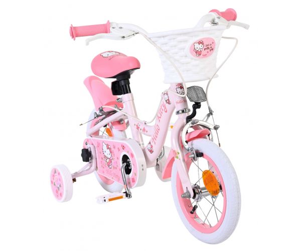 Met de Volare Hello Kitty 12 inch kinderfiets in lichtroze wordt leren fietsen een feestje. Deze vrolijke fiets is ontworpen om jonge fietsers een veilige en comfortabele start te geven, met een stabiele en kindvriendelijke opbouw.