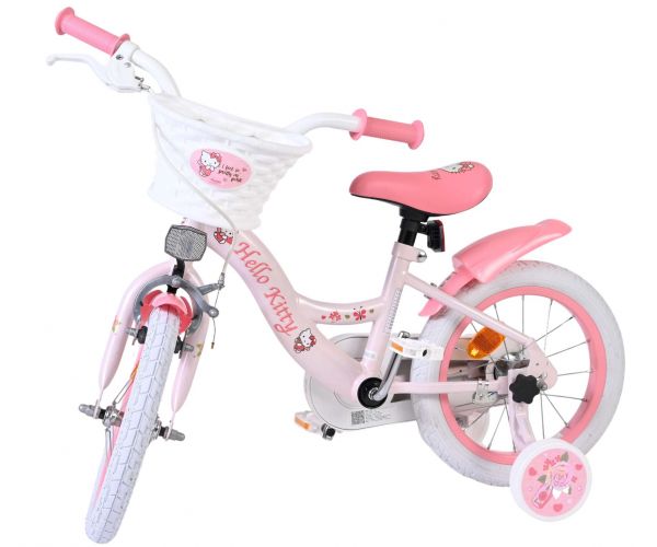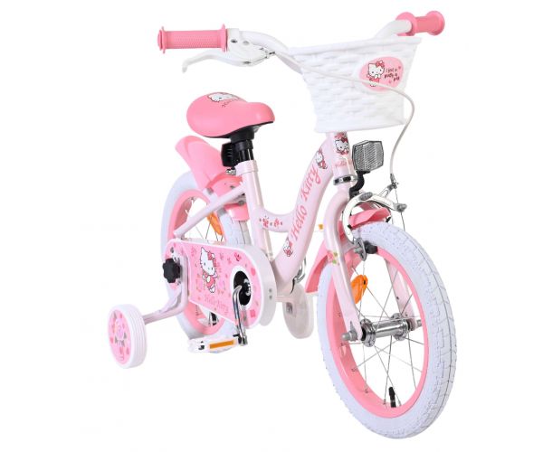 Met de Volare Hello Kitty 14 inch kinderfiets in lichtroze wordt leren fietsen een feestje. Deze vrolijke fiets is ontworpen om jonge fietsers een veilige en comfortabele start te geven, met een stabiele en kindvriendelijke opbouw.