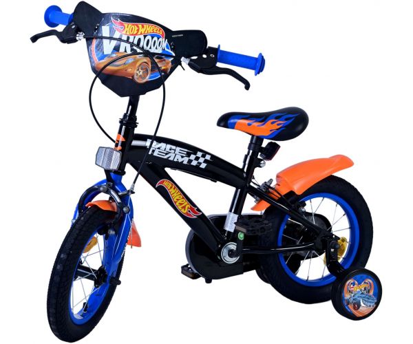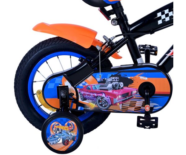 Hot Wheels Kids bike - Boys - 12 inch - Black Orange Blue - Two hand brakes