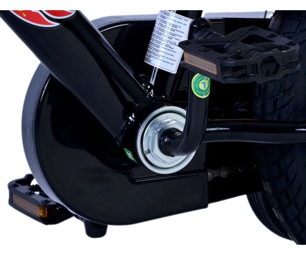 Safety comes first! That's why this cool bike has two hand brakes (no coaster brake) and a closed chain guard. In addition, the bike has removable training wheels to learn to ride a bike quickly and reflectors in the pedals. Comfort has also been thought of. The beautiful black Hot Wheels bike with blue and orange accents has a pleasantly soft saddle and an extra sturdy frame that can take a beating. To enjoy the bike as long as possible, the saddle is adjustable in height. In short: a top quality bike that your child can enjoy for years to come!